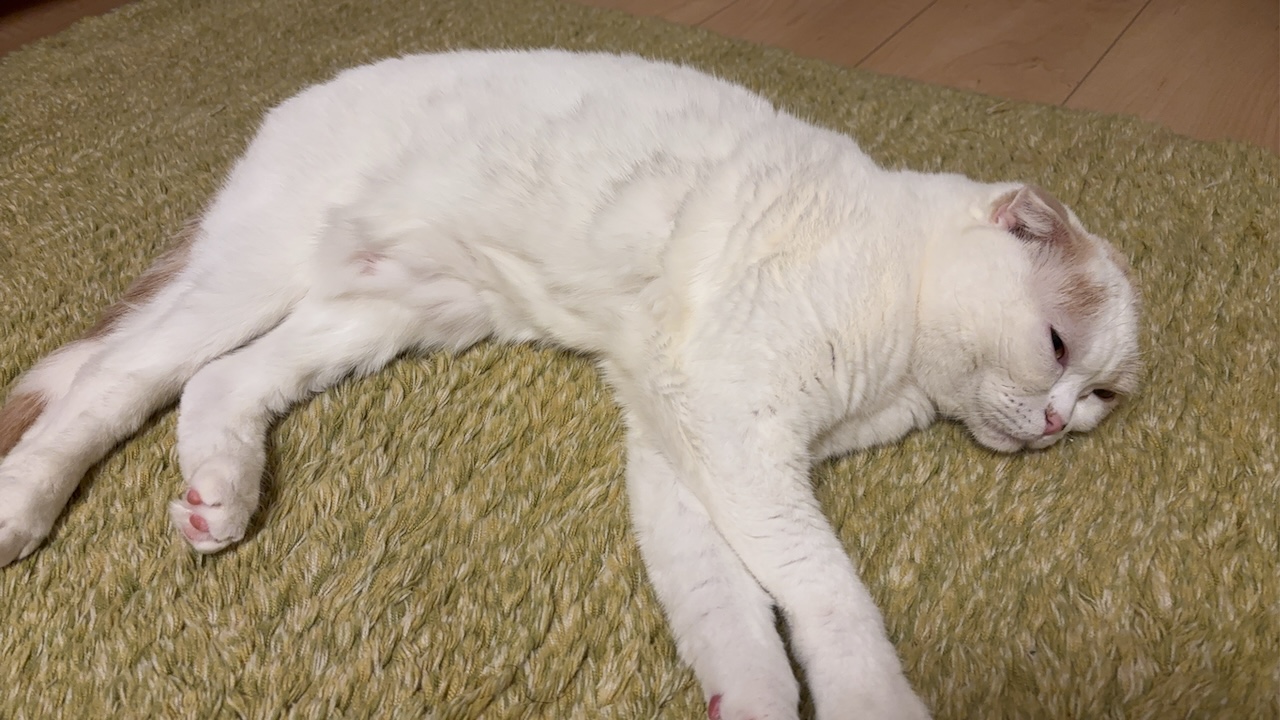 2026.02.01 猫 床でとろける“だめ猫”日和 manmaru-neko ぬくぬくのまるちゃん あったか独占宣言 緑のラグの上で真っ白なまるちゃんが大の字。ホットカーペットの”ほかほか”を全身で受け止め、”まるちゃん王国”が完成。今日も暖房は”まるちゃんファースト”でした。 だめ猫スイッチON スイッチが入った瞬間、まるちゃんのやる気はどこかへ消えました。前脚はだらり、目は半開き。呼んでも無反応…まるちゃんを呼び起こすにはもやは、魔法の言葉”ごはん”しかないです。 おじさん背中の衝撃 横から見ると、女の子とは思えない丸い背中。おじさんのような貫禄だね。正面は可愛い顔なので、ギャップがすごい。 床に溶ける白餅 伸びて、沈んで、最後は完全に溶けました。体とラグの境目が消え、巨大な白いお餅が完成です。 結局、かわいい だめ猫でも、おじさん背中でも、まるちゃんは癒やし担当。今日もぬくぬく猫に完敗でした。 まる ABOUT ME まる支配人2018年生まれ、7歳。 スコティッシュフォールド、♀。 食べることと寝ることが、なりより楽しみ。 好きなおやつは「クエール(うずら)」だよ。